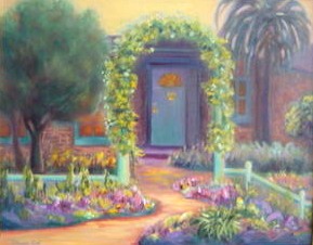 The painting on top was painted to prove that the color blue does not always recede. There's a saying among landscape painters, "blue in the background gives depth" or "when in doubt, use purple to achieve depth." In this painting I have my water (blue) in the foreground as well as some purple and it works, doesn't it? So the lesson is: "know your rules and learn how to break them."